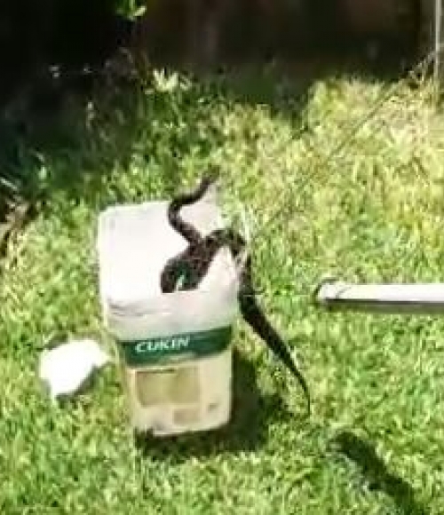 Família de Nonoai é surpreendida ao deparar-se com cobra Urutu no pátio da residência