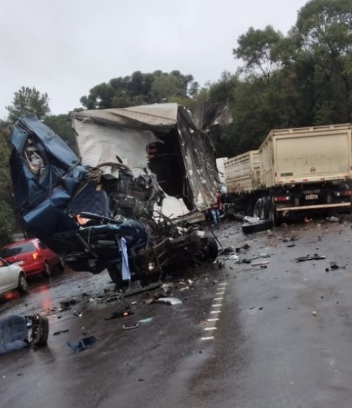 Grave colisão entre caminhões deixa vítima fatal na BR-282 em Ponte Serrada - SC